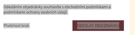 - Odešlete objednávku. Věnujte pozornost textu nad tlačítkem se souhlasem s obchodními podmínkami.